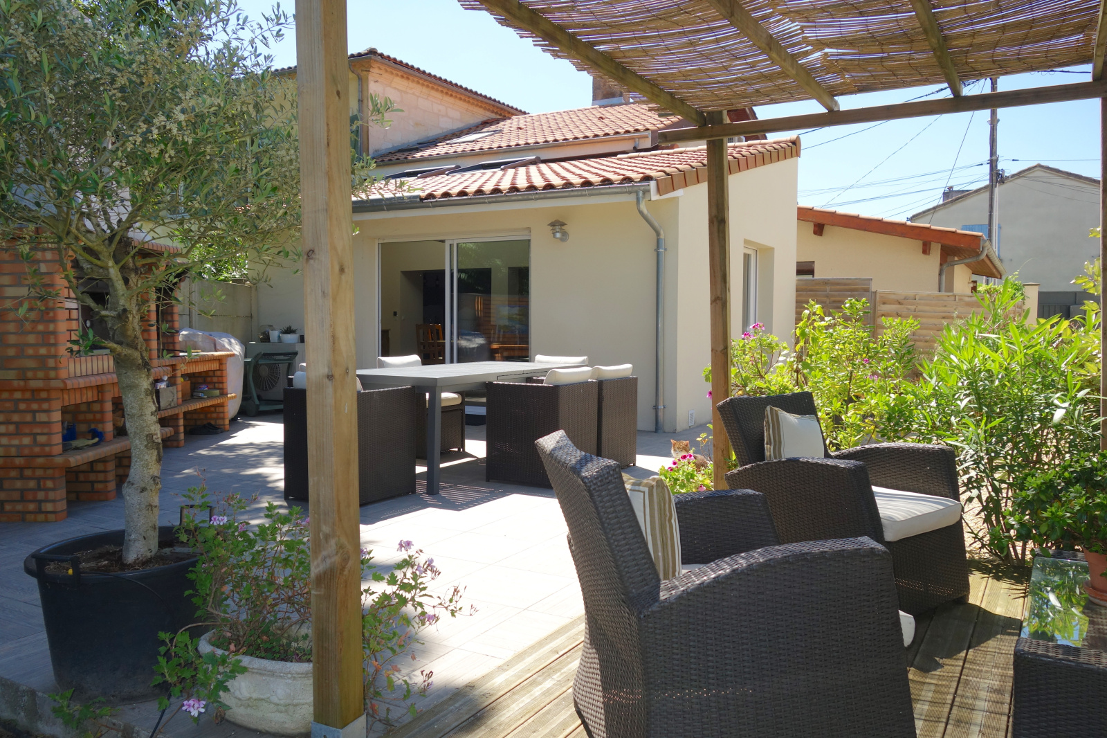 VENDU Bruges, grand Darnal, maison avec beaucoup de cachet, de 5 pièces principales en parfait état général comprenant: Entrée, séjour donnant sur la terrasse et le jardin, cuisine ouverte équipée, bureau, trois chambres dont une suite parentale avec point d'eau, toilettes, une salle d'eau. Magnifique jardin arboré de 768 m2 entièrement clos. Un garage, une dépendance, une grande cave de 20 M2, une superbe terrasse avec barbecue et four à pizzas. A proximité du tram et des bus, écoles et commerces. Son état impeccable, sa luminosité et son agencement sauront vous séduire. Rare sur Bruges, à découvrir!