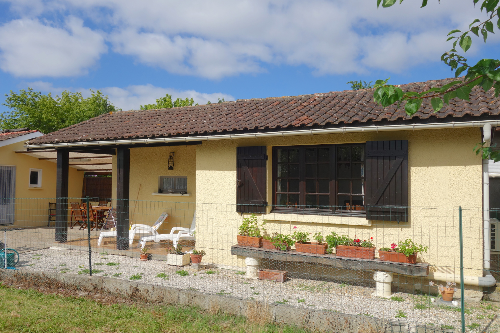 VENDU Bruges, sur un terrain de 794m2 non divisible, un plain pied de 5 pièces principales comprenant: Entrée, séjour, salle à manger, cuisine, 2 chambres, salle d'eau, toilette, cellier et une terrasse de 23m2 ++ un local de 41m2 ha. Travaux à prévoir. Quartier calme et proche tram C.