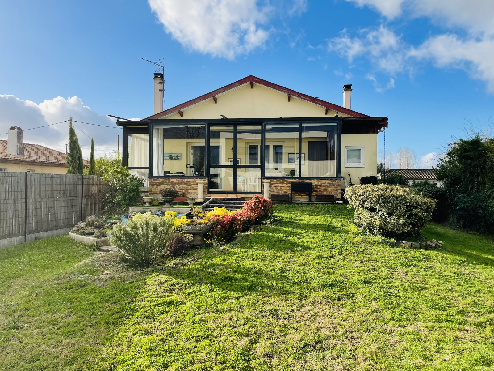 VENDU EXCLUSIVITE - Bruges, Grand Darnal, construite en 1965, maison de 7 pièces principales sur sous sol total comprenant: une entrée avec placards, un séjour-double donnant sur une véranda, une cuisine séparée et équipée, 4 chambres avec placards, une salle d'eau avec deux vasques, un toilette, un dégagement avec placards, une buanderie, un garage double, 2 caves de 26 et 19m2 + 1 cave à vins. Terrain de 694m2 arboré et piscinable avec abri de jardin et puit. 2 places de stationnement extérieur. A 1 km du centre ville, 400m du tram C et 200m du parc Ausone. Calme, luminosité et agencement sauront vous séduire. Travaux à prévoir. A découvrir !